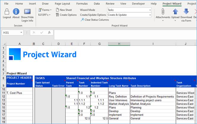 You can see that this project and related information will take up seven rows on the worksheet (assuming no other section has more than this number of records). A Project with only one Task will take up one row on the worksheet, again assuming no other section has more than this number of records.
