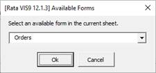 With cursor on a blank row and in the Header section double-click or click on the ‘Forms’ icon and select ‘Orders’ button to open the form.