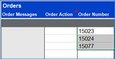 Update the orders by keying directly into the fields, or by using the Forms mentioned earlier.